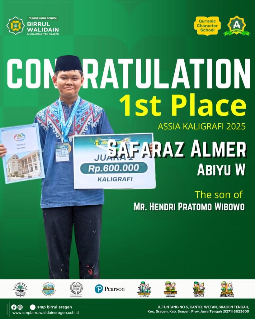 SMP Birrul Walidain Muhammadiyah Sragen Borong Juara di ASSIA Calligraphy Competition