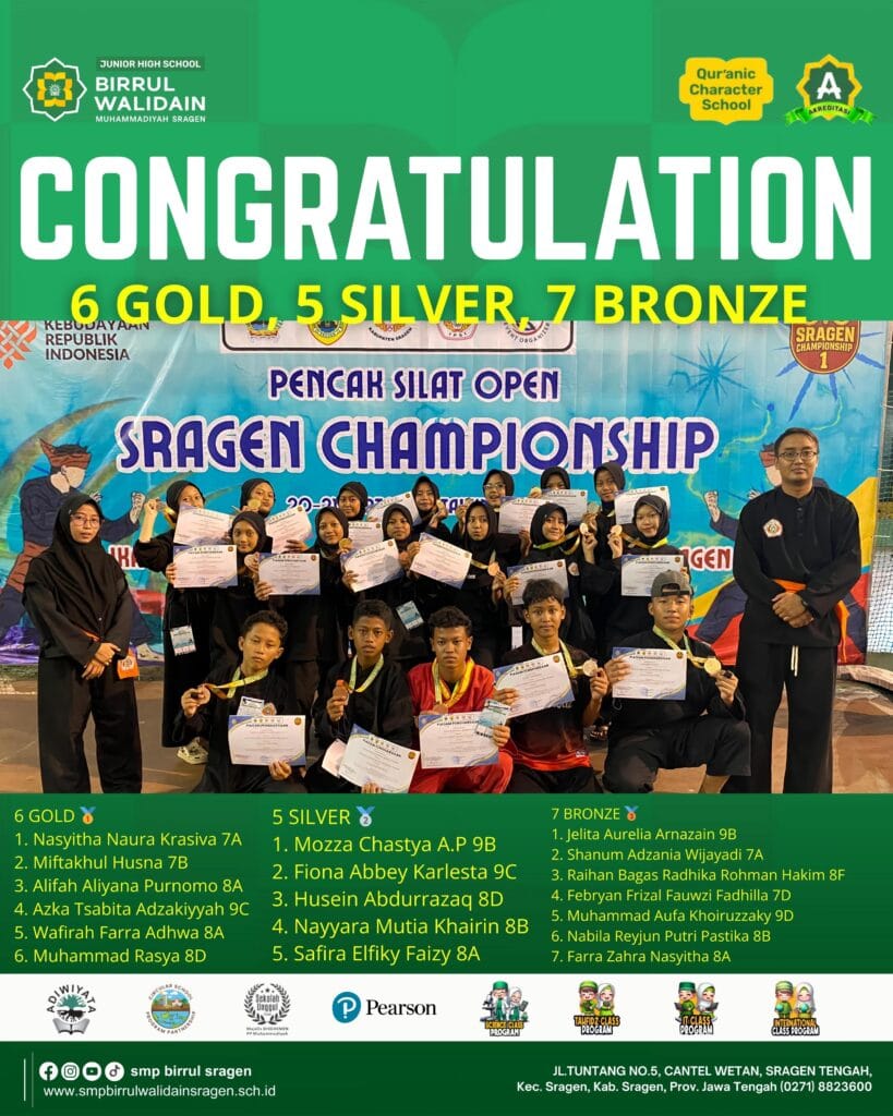 SMP Birrul Walidain Muhammadiyah Sragen Borong Juara di Open Pencak Silat Championship 2025!
