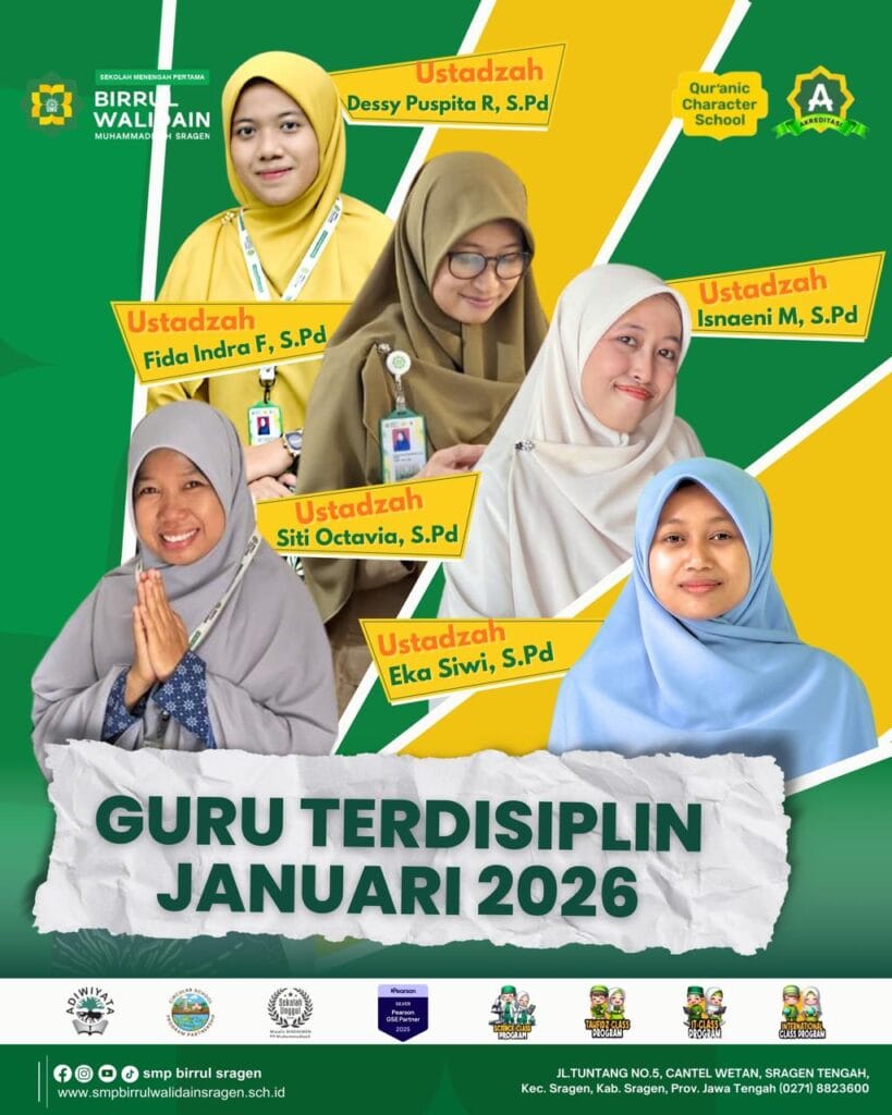 Komitmen terhadap kedisiplinan menjadi salah satu pilar utama dalam membangun budaya sekolah yang unggul. Sebagai Sekolah Terbaik Berkarakter Qur’ani, SMP Birrul Walidain Muhammadiyah Sragen terus menanamkan nilai tanggung jawab, integritas, dan keteladanan melalui berbagai program apresiasi. Salah satunya adalah penghargaan Guru Terdisiplin Januari 2026.